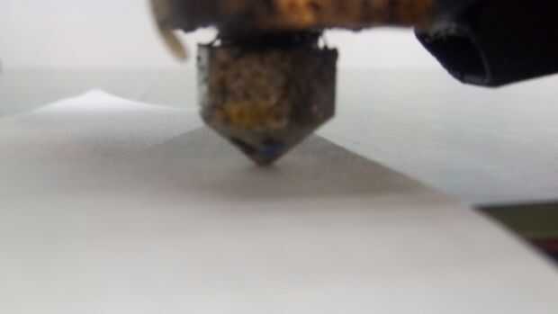 Tome un pedazo de papel de carta, peso normal y doblar por la mitad. Colóquelo debajo de sus impresoras 3D inyector y casa hotend en el papel. El papel debe ser intercalado entre la cama y la boquilla. Ahora, trate de deslizar por debajo de la boquilla. Si el papel se mueve libremente, la boquilla es demasiado alta por encima de la cama de impresión. Si hay demasiada resistencia (tienes que tirar firmemente en el papel para liberarlo), el inyector está demasiado cerca de la cama de impresión.