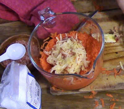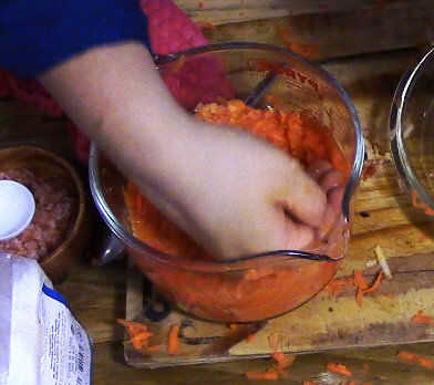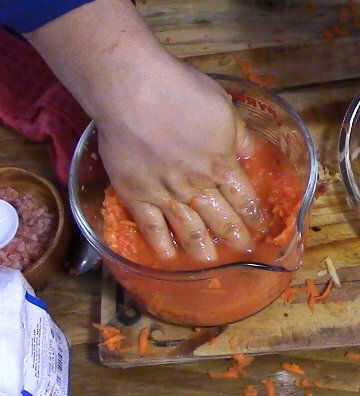 Generalmente todas las frutas y verduras se deben agregar antes de añade la sal cuando ahorrará tiempo pero Iv'e decidió añadir una manzana pequeña para el fermento porque la salmuera miró un poco baja y quería añadir más prebióticos que es alimento para los probióticos. Lo que significa que habrá más probióticos en el fermento terminado esperando a hacer el bien en mi vientre!