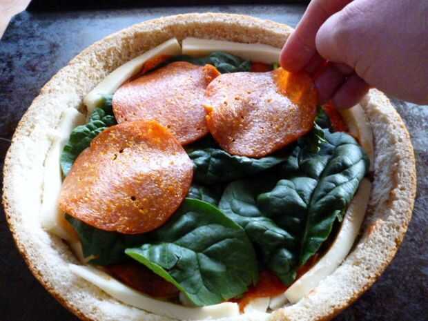 Simplemente alternativamente espinacas de capa, pepperoni, champiñones y salsa.