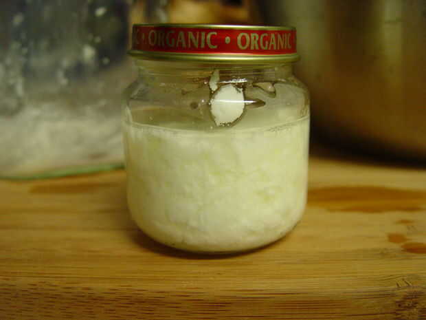 Recuerde algunos de los yogures para su hornada siguiente. Quitar unas cucharadas antes de filtrar.