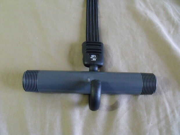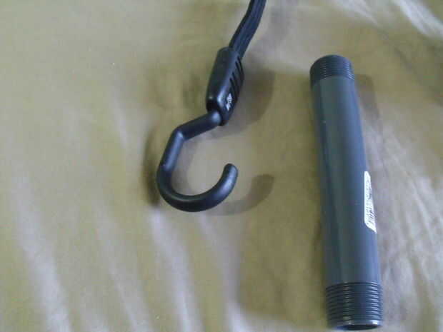 Añadir un tubo de pbc en cada extremo de la cuerda del amortiguador auxiliar asegúrelo con la cinta del conducto. en el caso de cuerda de amortiguador auxiliar no tiene un gancho solo pasarlo por el interior de la tubería de un lazo en un bucle.