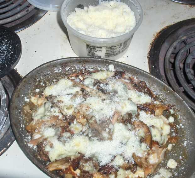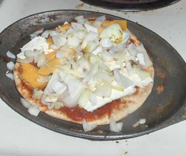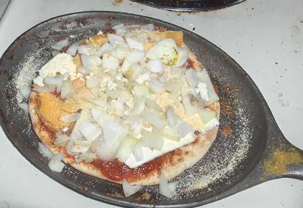 Luego encabezó la capa de queso con cebolla y luego de ajo en polvo.