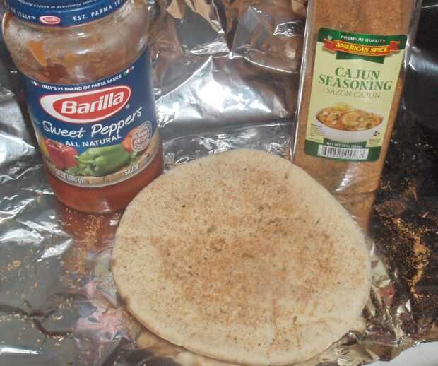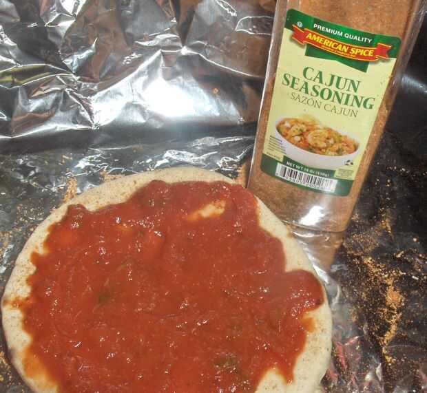 Esta vez que quería más cajún sabor polvo así, luego salsa y más polvo.