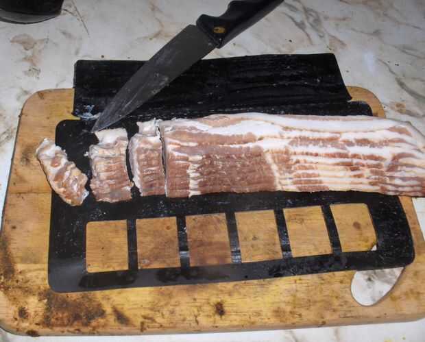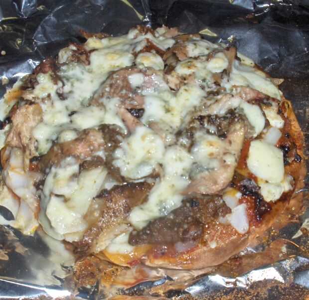 A continuación había preparado el tocino, cebolla y salchichón. Ahora ha añadido a la 'pitza' con el C3.