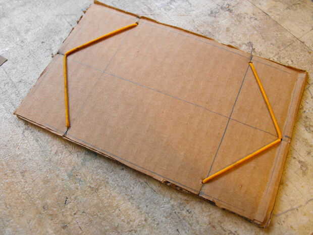 Uso de las marcas que hiciste anteriormente, cortar ranuras en su tablero e inserte sus lazos elásticos del pelo en ellos.