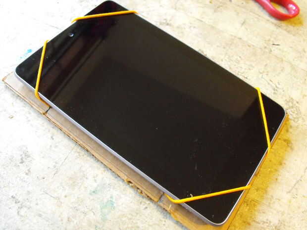Desea que las ranuras para estar lo suficientemente separados para que el elástico se estira y también captura los rincones de tu gadget.