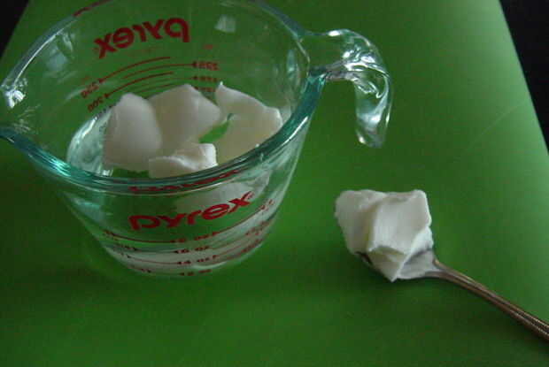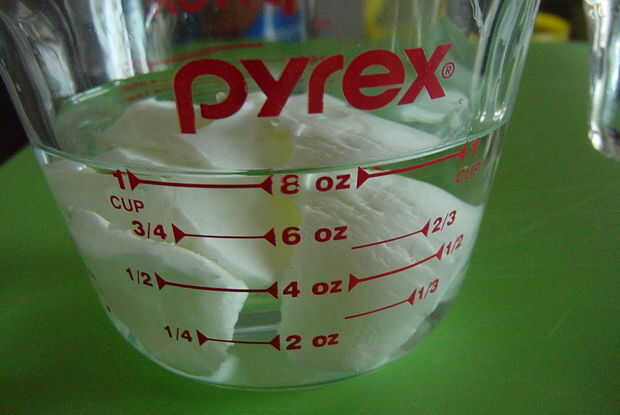 Voy a añadir sólidos acortamiento a la C de 3/4 de agua hasta que el nivel del agua 1 taza. El acortamiento ha desplazado el agua.