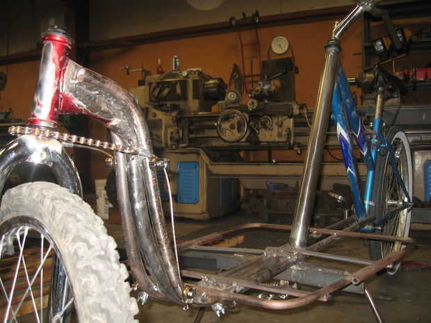 Después de que medida, volver a medir y medir otra vez para la buena medida montan la nueva columna de dirección y soldar juntos. De arriba hacia abajo será: sección roscada-->--> el tubo de extensión superior de las horquillas--> rueda dentada. No te olvides de colocar las guías teniendo en durante el montaje.