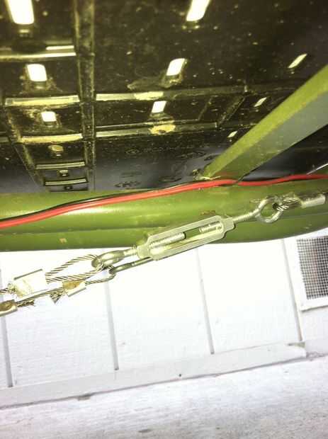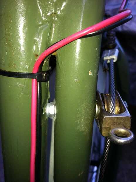 Al otro extremo del cable os adjunto un perno de ojo que ajuste el tensor. Utilizando el tensor me permite apretar el conjunto de cable en ambos lados. Si no se tendría que obtener la longitud del cable adecuado y para mí eso es imposible. Después de terminar esto y apretando para arriba he encontrado que la rueda delantera y el manillar alinean. Lo más fácil para mí hacer fue aflojar la potencia y el manillar se ajustan para que todo se alinea.
