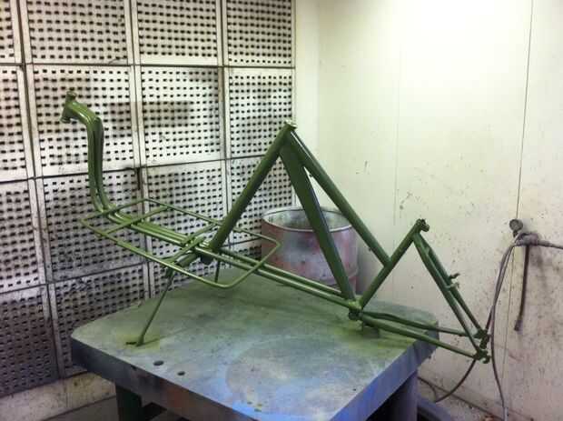 Luego lo rocía con una imprimación gris. Creo que he utilizado 2 latas en él para varias capas. El color final era verde oscuro y dio tantas capas como pude con las 2-3 latas de pintura que tenía. Siga las instrucciones para el secado para obtener mejores resultados. No comprar el más barata se puede comprar la pintura de aerosol, es una mierda. Buena pintura cubre bien y se seca rápido. Las cosas baratas se ejecutar fácil y hacer más trabajo para usted en el final. Las defensas tiene varias capas de un verde más ligero y los componentes dirección consiguieron un bonito lustre negro.