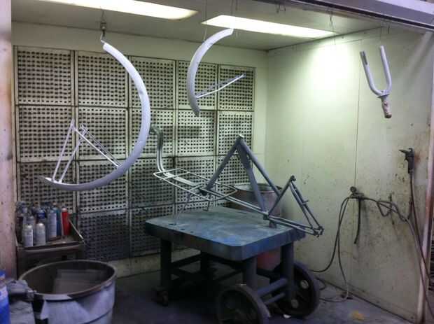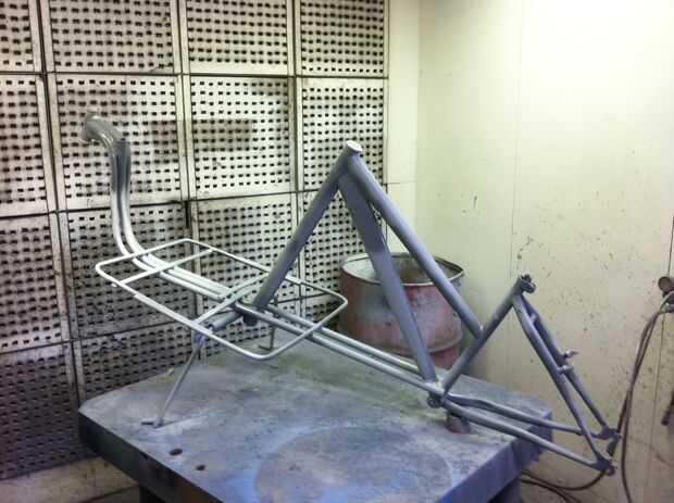 Esta parte es una mierda pero hace la diferencia en cómo su aspecto final de la bici así que tómate tu tiempo. Había estado utilizando una rueda de alambre en mi molino de Ángel para quitar la pintura de la mayoría de los componentes por lo que no hubo mucho izquierda en este punto. Partes suficientemente pequeñas entraron el arenador de la arena. Montones y montones de pulido en mi soldaduras hacían ver más suave. En el cuello de la moto luego utilicé relleno de Bondo para suavizar realmente las cosas. Cuando estaba satisfecho lava y seca muy bien y moverse en la cabina de pintura.