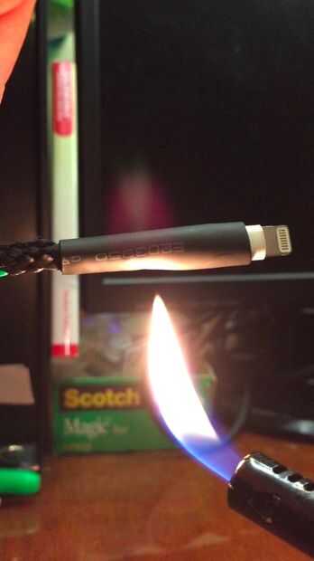 Después de eso, hacia el otro lado, aplicar una sección de 1 1/2 pulgada de diámetro 3/8 de pulgada del encogimiento del calor al final del cable lightning relámpago. Esto no sólo mantendrá abajo las fibras pierden, también proporcionará un apoyo adicional.