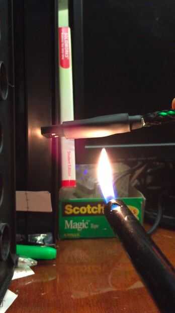 Diapositiva una sección de 1 pulgada de calor de 3/8 de pulgada de diámetro del encogimiento hacia abajo la parte usb del cable de carga como se muestra en la segunda foto y calor reducirlo en el lugar (haga esto primero!!). Una vez que haya terminado, deslice sobre una sección de 1 pulgada de una pulgada 1/2 pieza de diámetro de calor retráctil sobre el encogimiento de lado y calor usb en su lugar.