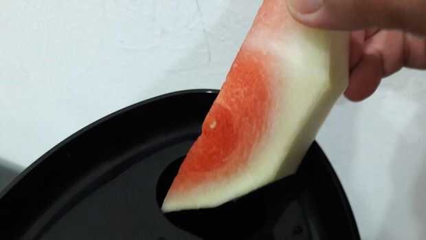 4. El proceso de jugo debe terminar con el último ingrediente que es una rodaja de melón.