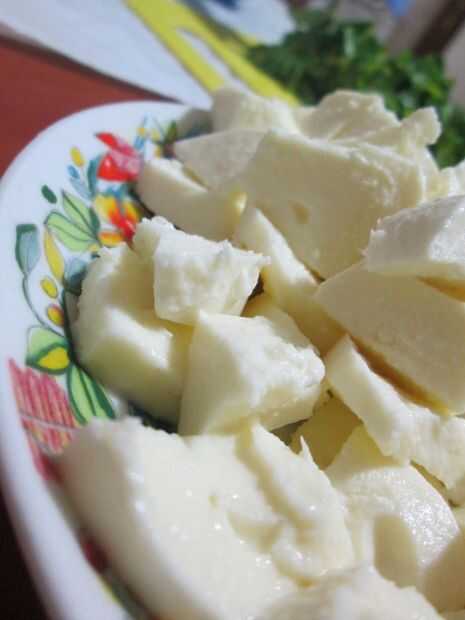 Cortar la bola de mozzarella en cubos pequeños y manténgalos a un lado.