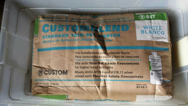 Compré una bolsa grande de mortero Mortero seco. Si se mezcla a ti mismo, es mucho más barato y se puede utilizar tanto o tan poco como usted necesita. Después de terminar alicatados en la tabla, tenía más de la mitad de un saco de mortero sobrante para el próximo proyecto o futuras reparaciones.