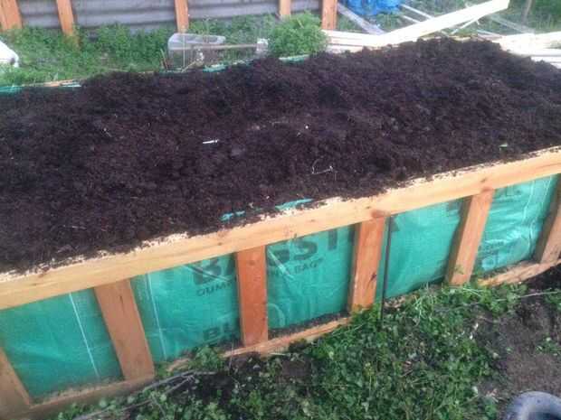 Usted puede ahorrar montos significativos de dinero usando un «bagster"desechable contenedor disponible en Lowes o Home Depot por $30.Después de uñas el jardín bagster para el marco toma un cúter u otro cuchillo y corte el fondo de ella para que tenga contacto directo con el suelo. (se indica en el paso de bagster)