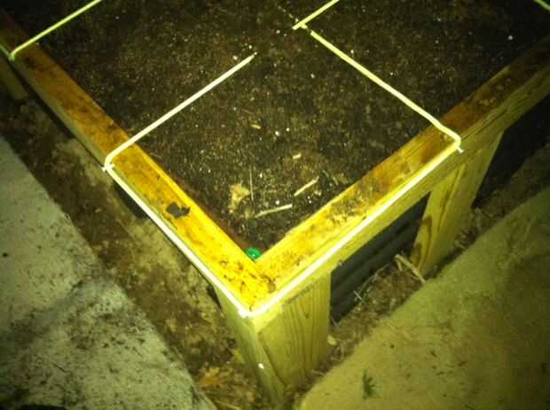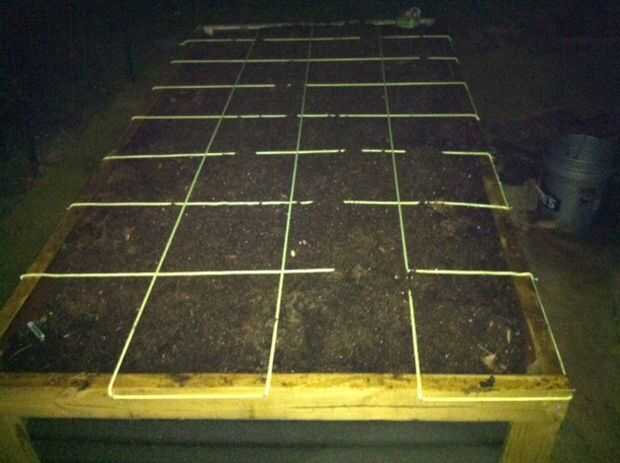 En su libro "todos nuevos pies cuadrados jardinería" Mel sugiere utilizar sólo redes rígidas. Encontrar redes rígidas más caro de instalar y más difícil trabajar con. Prefiero una simple ropa línea de Nylon disponible en cualquier home center. Incluso tengo un brillo en la línea de la ropa oscura de puerto de carga.