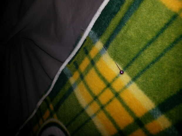 Comience con 2 yardas de tela y mira a ver qué lado desea hacia fuera. Elegí que la más suave y más brillante lado hacer frente hacia fuera en cada uno de color. Coloque ambos hacia fuera sobre una superficie plana y hasta todo lo que pueda. Dependiendo de cómo está cortadas en la tienda determinará cuánto recorte que tendrá que hacer. Comience con un borde y línea de verlos juntos y perno hacia abajo. Ninguna línea hasta entonces mejor que se puede y uno puede ser más y luego la otra tela Asegúrese de que son la misma longitud de lados y ajuste en consecuencia. PIN por donde sientes ayudará a mantener a los tejidos juntos.