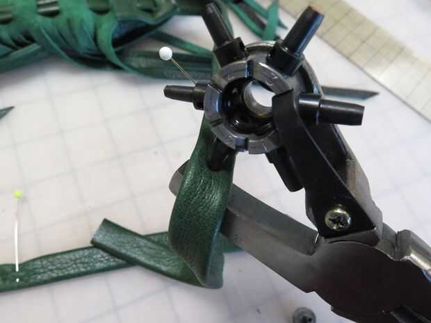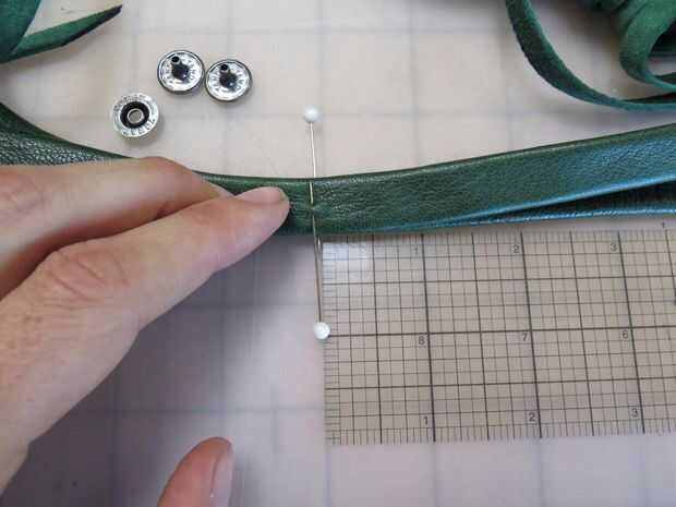 Marcó este centro con un alfiler en cada correa había medido hacia fuera 1/2" a cada lado y había perforado los agujeros para las copias instantáneas.