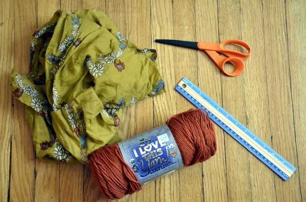 -Hilado que es 5-7 oz (5 onzas de hilado hará una bufanda más delgada como el pañuelo blanco o verde se muestra arriba. 7 onzas de hilado harán una más grueso como la bufanda roja)