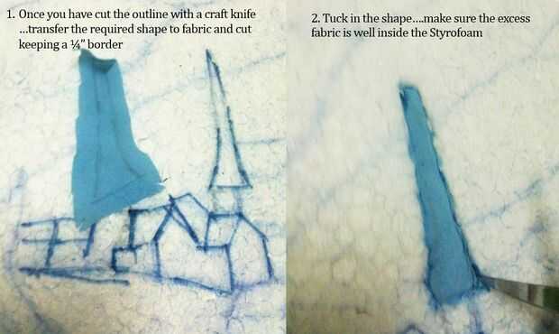 Este sistema es menos basura... pero es un dolor real! Todavía voy a explicar a usted.. .just en caso te quedas sin tela! Corte la forma con un cuchillo. Transferencia de la forma requerida a la tela y corte manteniendo un borde de 1/4". Lugar en forma para que la frontera de 1/4" es todo el contorno... empezar metiendo :-)