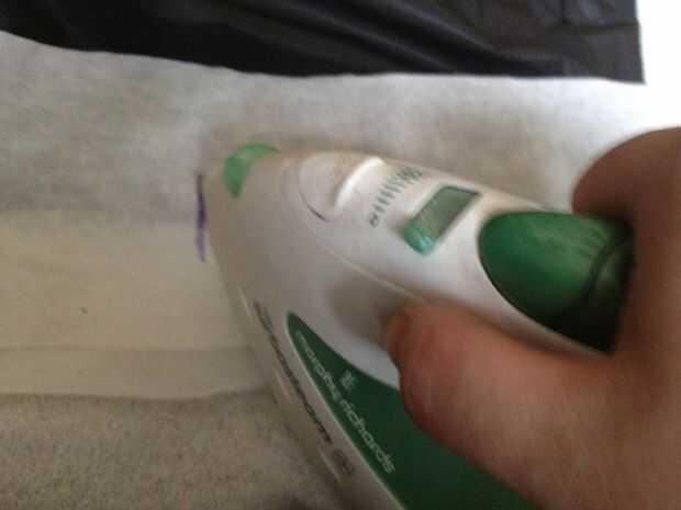 Compruebe que usted puede conseguir su cabeza a través del espacio entre las costuras. Si usted ha hecho demasiado pequeño, corte un poco si el área fuzed de cada lado (no ser demasiado obvia una vez que está adentro hacia afuera). Obviamente si su demasiado grande, hacer las costuras más.