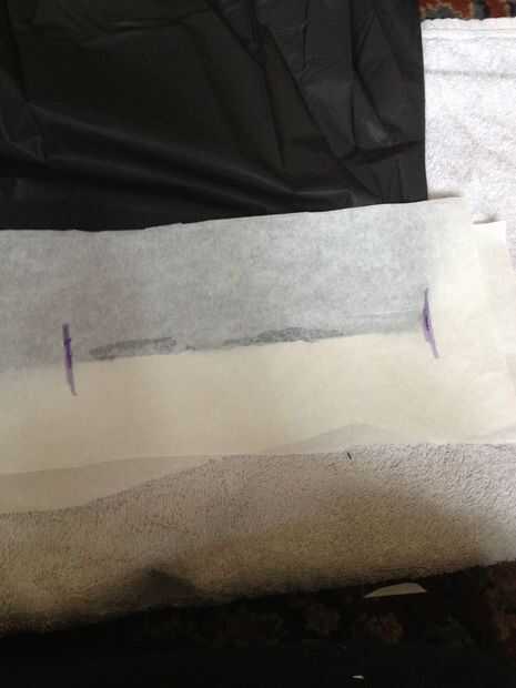 Utilizando la técnica que aprendimos en el paso 1, fusible de 6-7" en cada extremo del borde corto - marcas de rotulador en el papel le ayudará a asegurarse de que todo es simétrico.