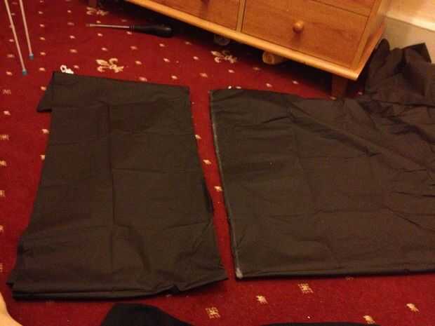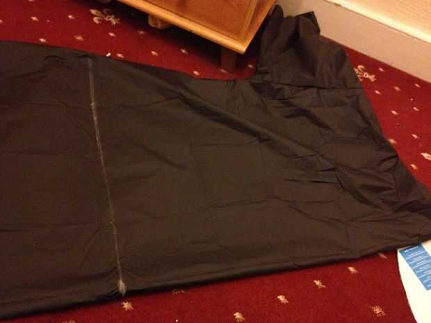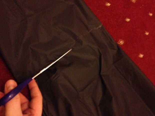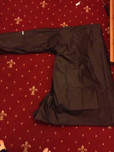 Quítate la túnica, doblar por la mitad y cortar las mangas y el cuerpo a la longitud deseada.
