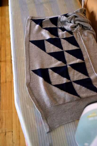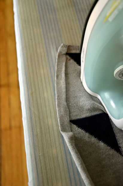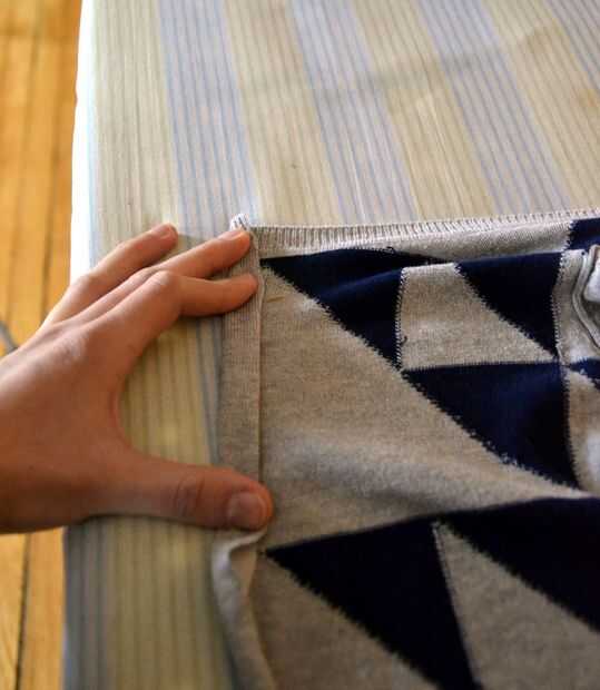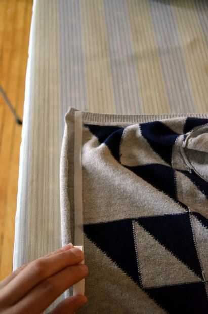 Doblar la cinta calor y bonos el suéter y plánchela.