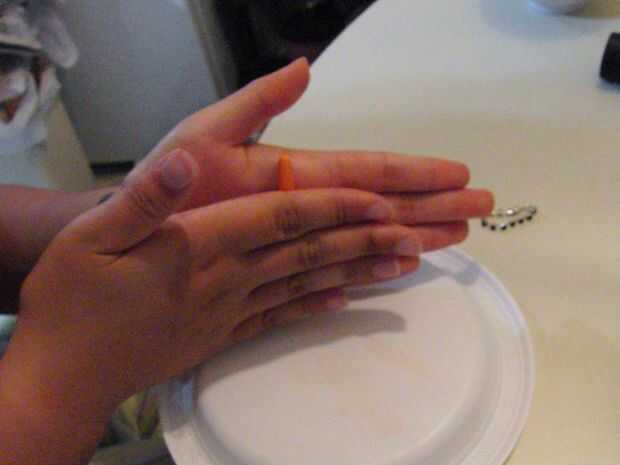 Abra el paquete de sugru y enróllelo en forma de gusano. Dividir en dos piezas.