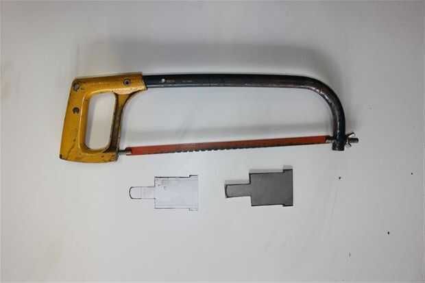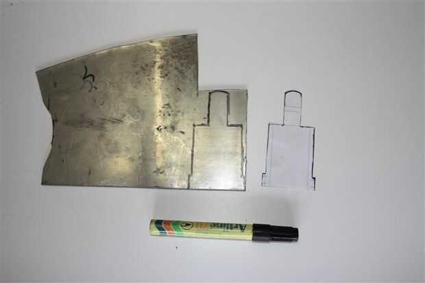 Una vez que la plantilla es marcada más o menos cortar la forma con la sierra. La razón la plantilla no es pegamento de antes mano es principalmente porque la sierra deja una rebaba áspera y si corta pasado que el área delimitada por la plantilla puede solamente ser cambiado de puesto por lo que puede omitirse la marca cruzada.