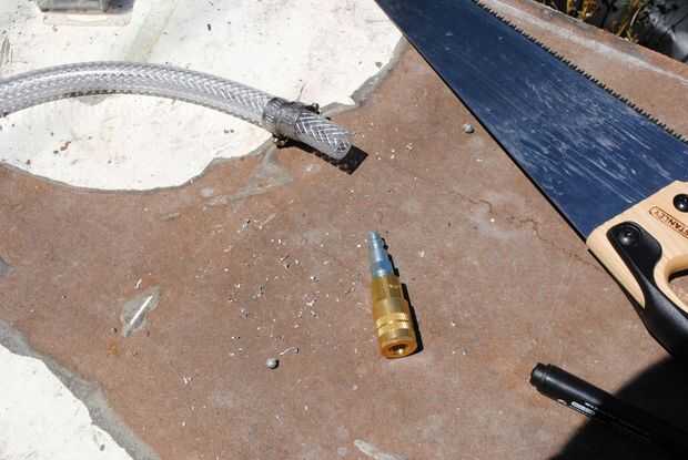 Una vez que tenga una base es hora de hacer un enganche. Hice una variación de esta idea de enganche y utiliza el acoplamiento de la manguera de aire. Ya tenía un enganche que une a mi bici por lo que hizo más fácil. Para el brazo de abajo usé conducto eléctrico.