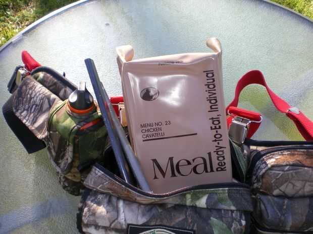 El compartimiento grande de la bolsa del centro sostiene un ERM perfectamente. Técnicamente, es sólo una comida, pero hay un montón de calorías y va bastante bien para un día de una persona. También tengo un par más palos de luz en este bolsillo, ubicado en mangas plásticas de protección. Son más pequeños y no duran tanto como los grandes, pero todavía pueden ser útiles.