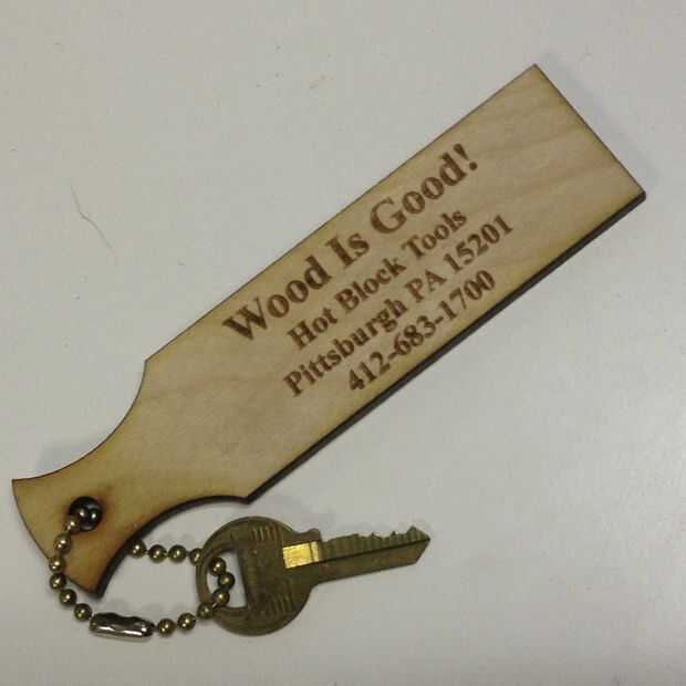 empecé a hacer herramientas de madera para el soplado de vidrio lo hace años y gastaría dedicar tiempo haciendo estos poco paleta (una herramienta que utilizamos) clave cadenas como anuncios de regalo. Cortar cada uno en la Sierra de banda y luego la información de la marca. Hasta que un día en una de mis sesiones de "Que hice en TechShop" me golpeó. Podría establecer para el láser de corte y hacer un montón en ningún momento. Así lo hice y creo que ahora toma un minuto cada una. Me gusta hacer ahora.