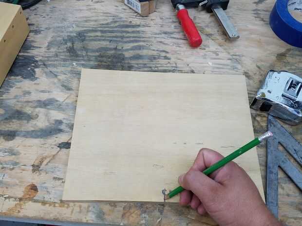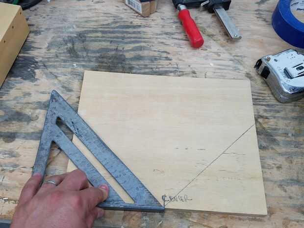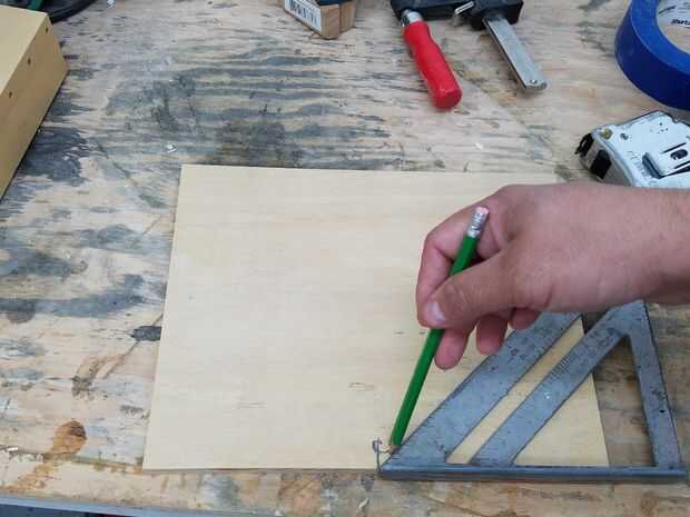 Marqué el centro de la longitud del panel lateral. Puse un cuadrado de la velocidad en la línea central y había marcada esa línea. Que el cuadrado de la velocidad de la vuelta y repite este paso en el lado opuesto.