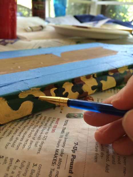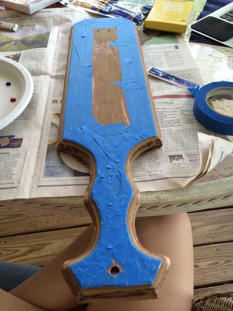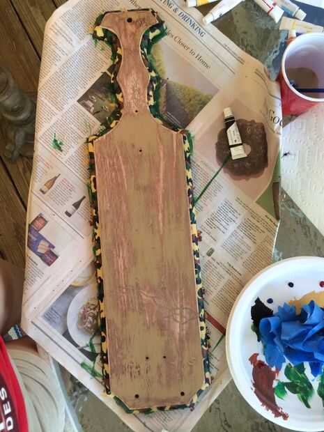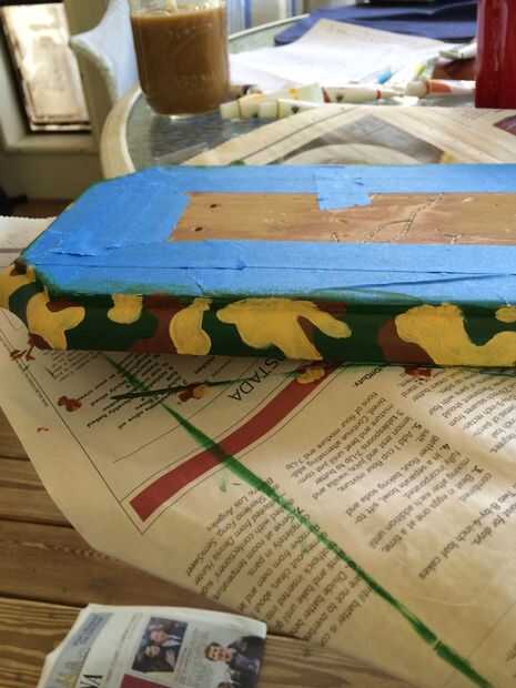 Cinta de la cara principal de la pala, luego pintar un borde de camo en el borde.