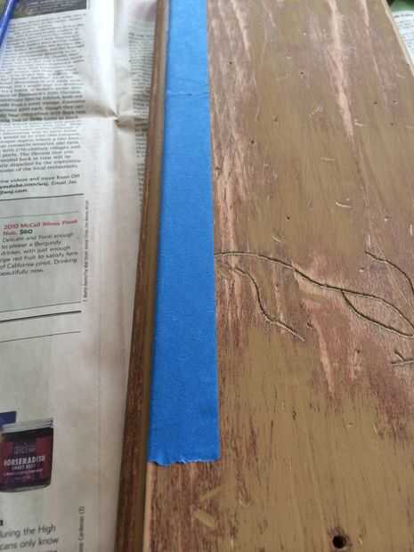 No parece necesario, pero usted querrá utilizar cinta de pintor para proteger la principal cara de la pala. Línea de la cinta con el borde de la paleta y cubrir cualquier pieza que se puede pintar accidentalmente. Las áreas más complejas como la parte superior de la manija puede requerir más cobertura de cinta que dicen que la parte principal de la paleta. Usted puede juzgar donde poner la cinta, aunque, o incluso si se utiliza en absoluto.