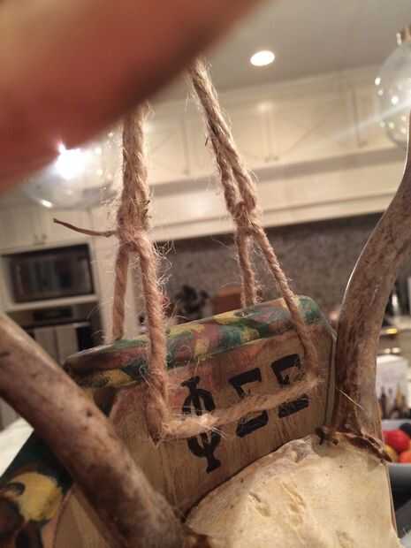 ¡ Adelante y, teniendo en el typestyle que ya has elegido para tu paleta, añadir sus cartas! Me sentí bajo la botella abrelatas de casquillo era un lugar excelente, pero luego cometí el error de no planificar muy bien (como he mencionado anteriormente) y terminó hasta pintura mis cartas debajo de la cuerda más tarde solía colgar la pala. Si usted quiere, usted podría pintar en los cuernos en su lugar, o no pinta letras en todos, es usted.