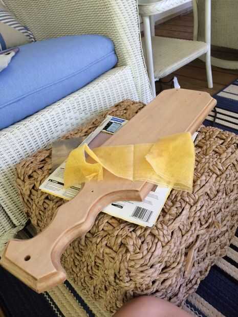 Para hacer esta paleta un poco menos nuevas y limpias, arena por todos los bordes, esquinas y curvas. Si la pala ya está manchada, querrá volver a pulir a través de la mancha para obtener una madera natural, sobre todo porque nos vamos a manchar otra vez.