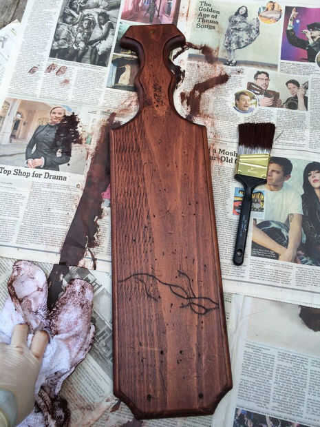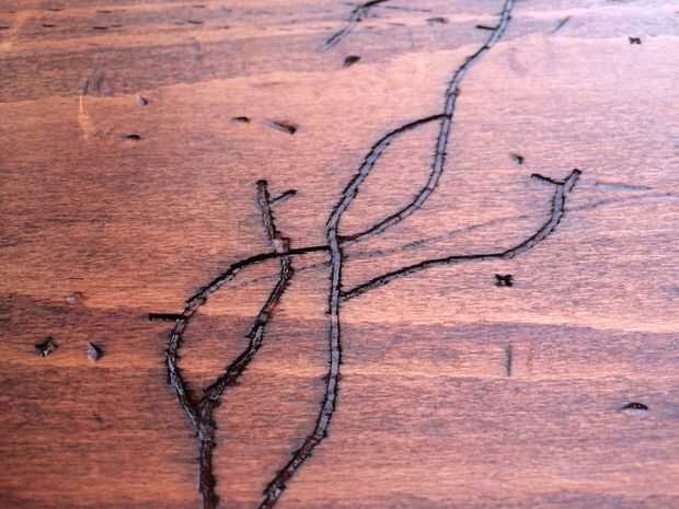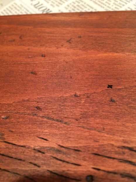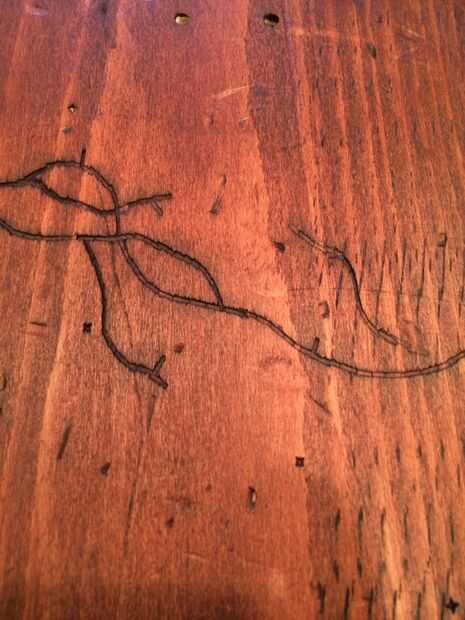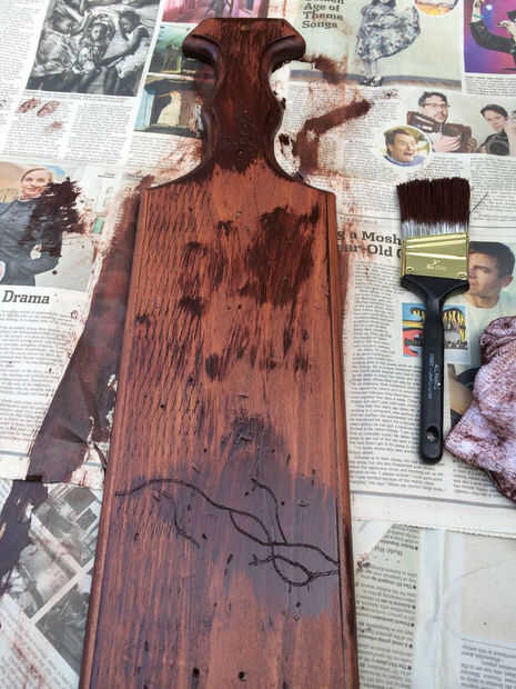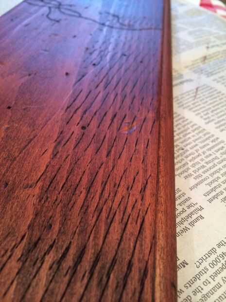 Después de unos minutos, decidí que quería los guiones a ser un poco más oscuro, por lo que acabo de añadir algunas más sobre la mancha y déjela reposar unos segundos más. Limpiar apagado otra vez y deje secar durante unas 2 horas. Vivo en Georgia, como se mencionó anteriormente, por lo que es extremadamente húmedo que significa periodos de secado. Debajo de un ventilador, yo probablemente podría han salido con dejarlo durante una hora.