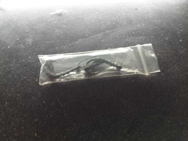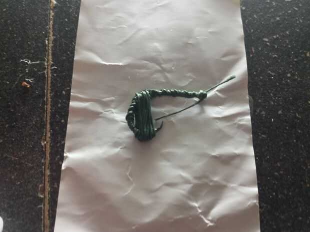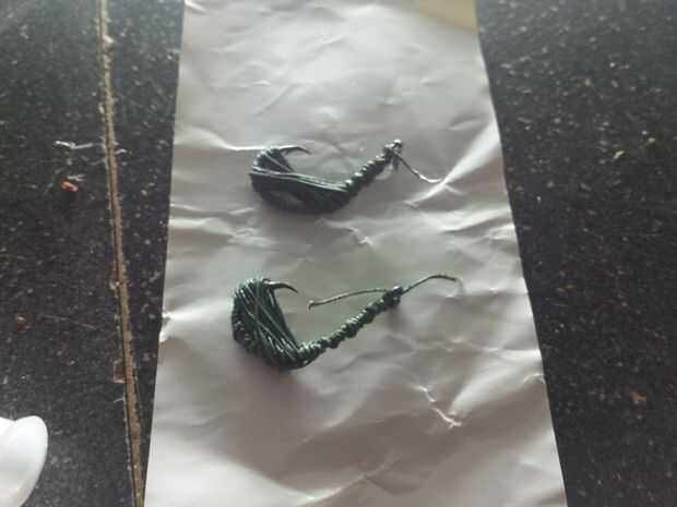 Tomé dos anzuelos y algunos hilos de spyder (mi marca preferida de sedal) y envuelto los ganchos con él. Girar aproximadamente 6 pies de línea en cada uno y me alimenta el extremo suelto hacia atrás a través del ojo de ganchos por lo que más adelante no hay corte necesaria para utilizarlos. Después fue envuelta en la línea les agregué a una bolsa de zip pequeño para mantenerlas seguras y evitar recibir un pinchazo desagradable en el campo.