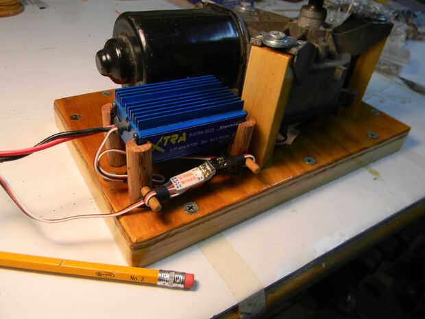 Poder! En el Reino del hobby de radio control, hay un sueño incumplido, para hacer un amplificador servo de gran alcance, barato y sencillo. Queremos hacer grandes proyectos, como un cortacésped de r/c, o muy grande de robot de camino. Hay motores eléctricos con reductores, como motores de limpiaparabrisas de parabrisas, pero ¿cómo podemos utilizarlos para dirigir nuestro proyecto? Hay kits electrónicos que se pueden comprar, pero en mi opinión, son demasiado caros. En esta casa, construimos lo que queremos si es posible. No estoy construyendo un vehículo especifico, solo demostrando cómo los componentes electrónicos van de la mano para poder utilizar este concepto en la aplicación de servos de alta potencia. Estos son los aspectos más destacados: