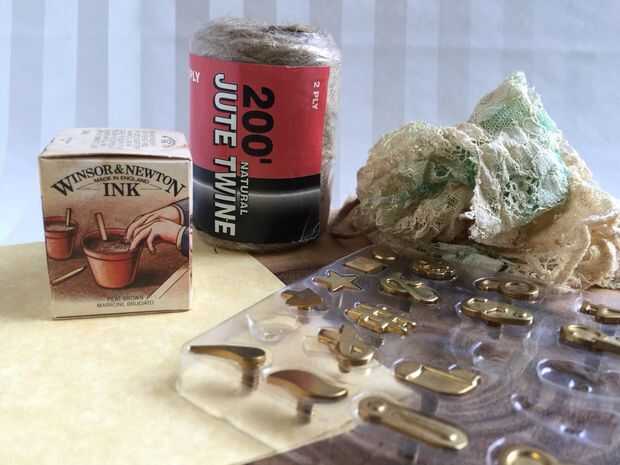 A continuación, mezcla un poco de la pintura de quemadura carmín con Mod Podge y cepillado verticalmente sobre el frasco, asegúrese de añadir un poco más al cangrejo grabado en la botella. Una vez seco, me pega un poco de cordón en el cuello de la botella de la vendimia, envuelto en hilo de arriba. ATA un nudo en la cuerda para mantenerla en su lugar. Arroja a chorros una gota de pegamento caliente en el saber, mezclado en un crayón verde pequeña y pulsa una moneda en la una vez que haya enfriado un poco. (Ver otra vez, sus dedos, está caliente!) Los márgenes de la etiqueta estaban lejos y la cosa entera angustiada con tinta marrón. Yo usa Mod Podge para pegar en el lugar.