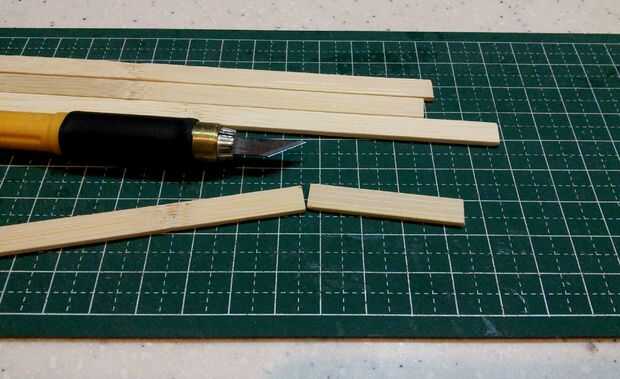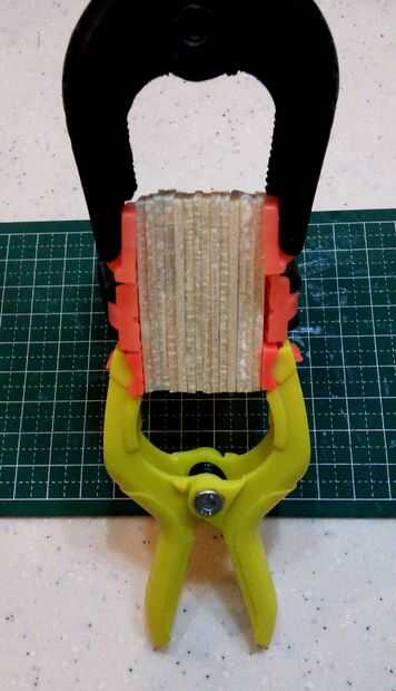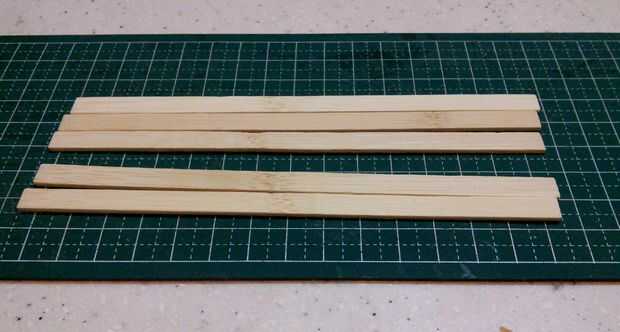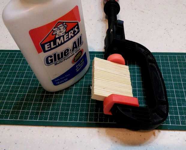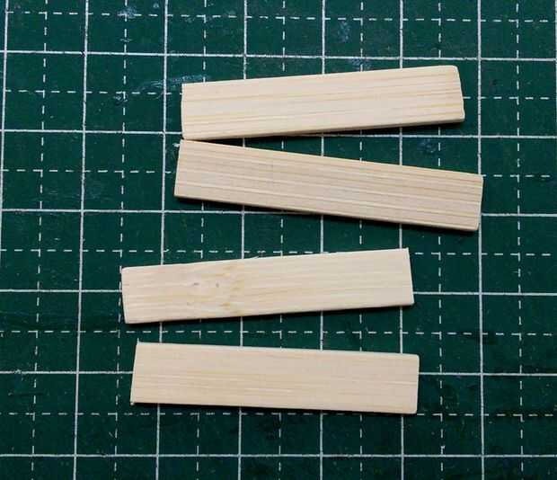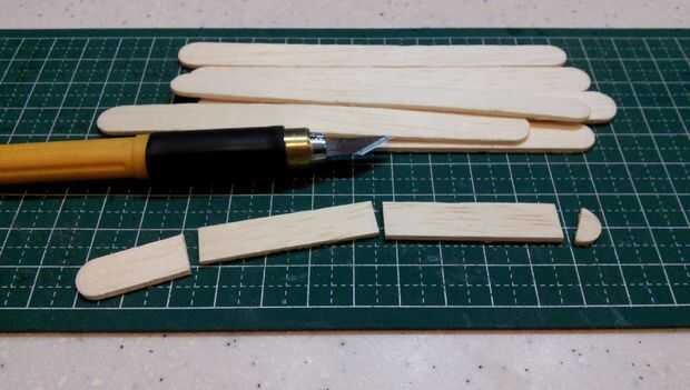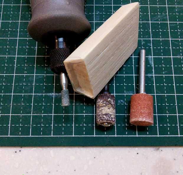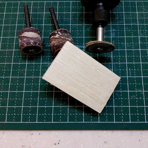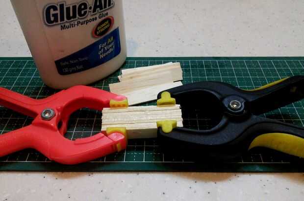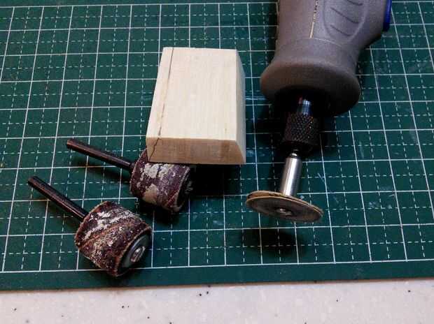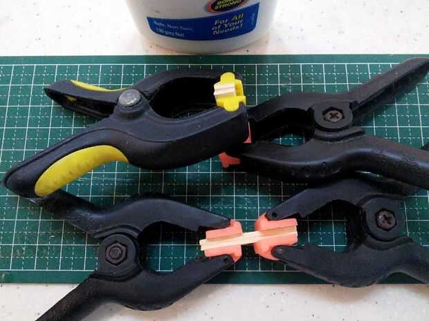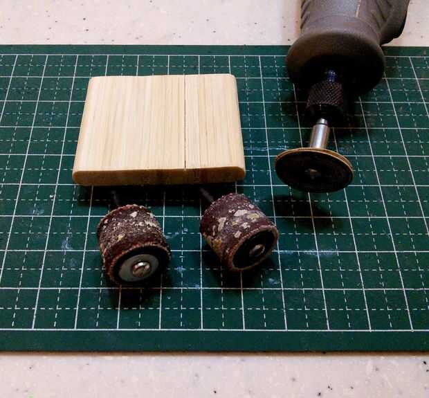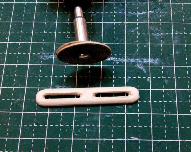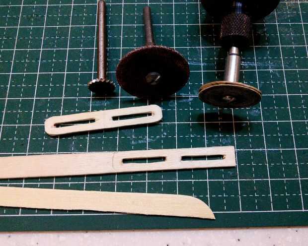 Las unidades de accionamiento principal se realizaron desde dos 2 capas de palitos medianos de depresor de lengüeta de repuesto. Dos ranuras fueron talladas para cada capa mediante un disco abrasivo estándar en una herramienta de la moto. Las ranuras se hicieron más grandes con un accesorio de corte de alta velocidad #199. Las ranuras fueron acabadas con un accesorio de la lijadora de disco fino en una herramienta de la moto. Las dos capas se laminado y permitir que seque durante la noche. Los bordes fueron redondeados y acabados con un accesorio de la lijadora de disco fino.