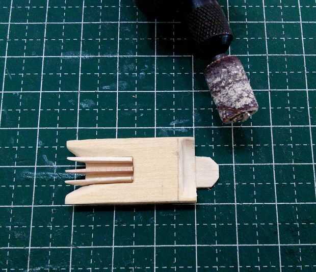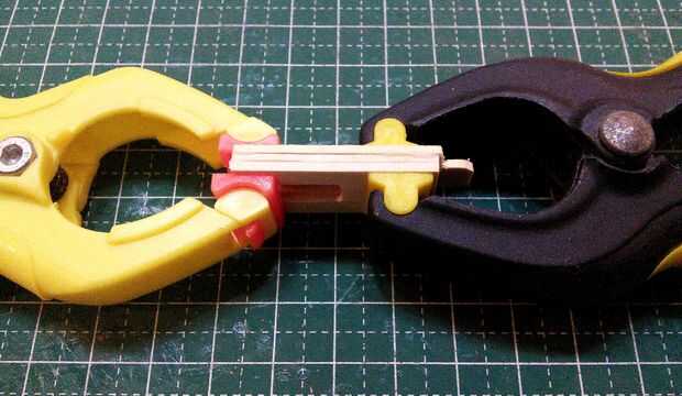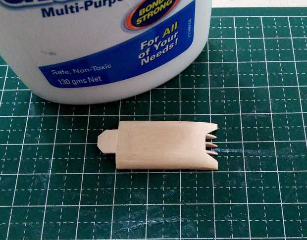 Los listones de 3 tres eran de desecho, agitadores del café fino cortan y formado con una lijadora de disco fino. Pegué cada listón en la brecha de las dos capas inferiores, asegurándose de que los listones son rectos e incluso.