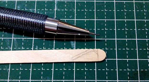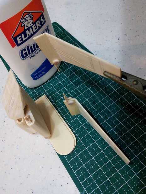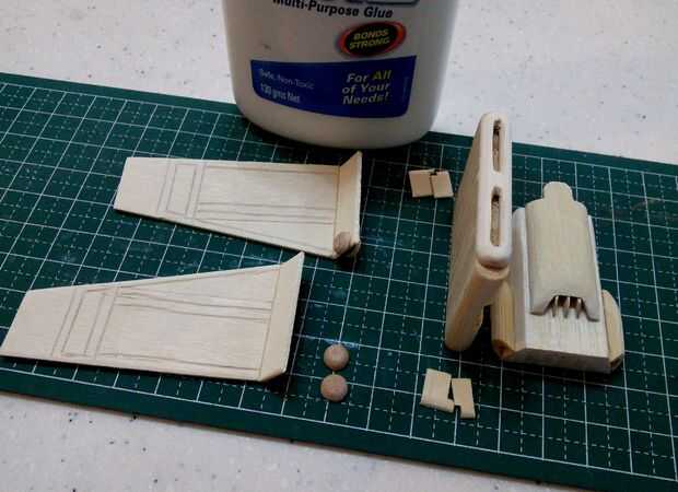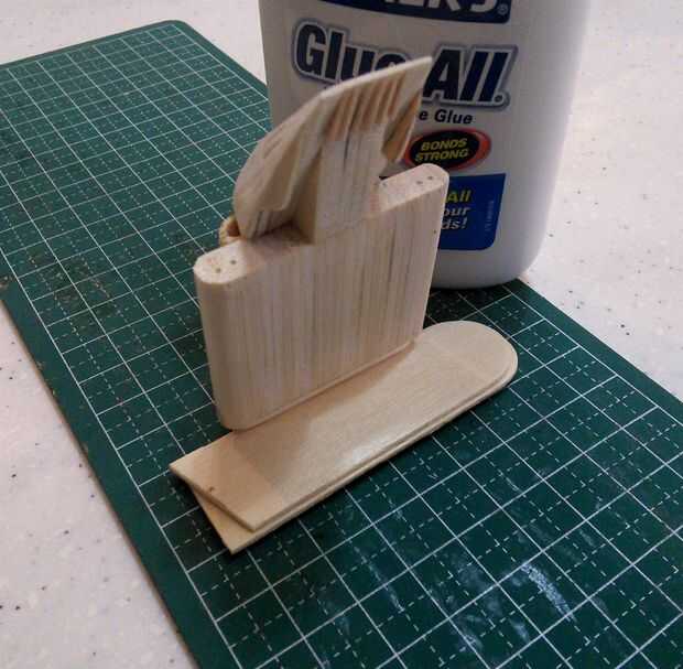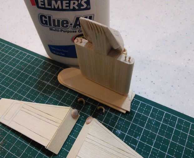 El tren de aterrizaje 'almohadillas' hicieron de café fino agitadores cortados a la medida con un cortador Olfa. La base eran de un trozo de palillo de paleta más grueso de mi caja de repuestos. Las suspensiones de largo tren de aterrizaje fueron fabricadas desde la más fina madera tacos también de mi caja de repuestos. Las suspensiones fueron formadas usando un accesorio de disco fino en una herramienta de la moto. Cada sistema fue montado cuidadosamente asegurándose de que la colocación de los montajes y suspensión de las almohadillas de aterrizaje cumple descargadas ilustraciones e imágenes.