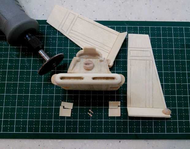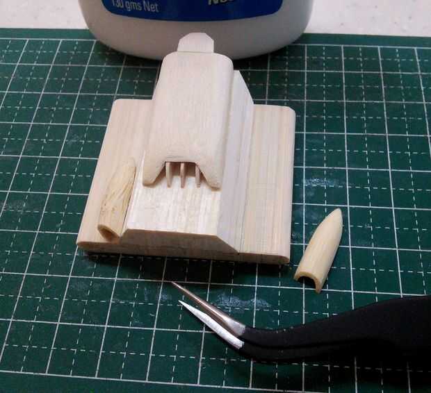 Va a la parte trasera del fuselaje, la unidad principal fue pegada en el fuselaje inferior siguiente. La pistola de montaje en la parte trasera frente a cañones láser fueron pegados en la cavidad donde la entrada de aire dorsal se une con el fuselaje superior. Una ranura fue realizada utilizando un disco abrasivo estándar para el montaje del cañón láser. Cuando la Asamblea entera del fuselaje estaba completamente seca, taladré agujeros guía pequeña para los cañones láser orientado hacia delante, en bordes opuestos del fuselaje delantero inferior utilizando un accesorio de corte de alta velocidad #125.