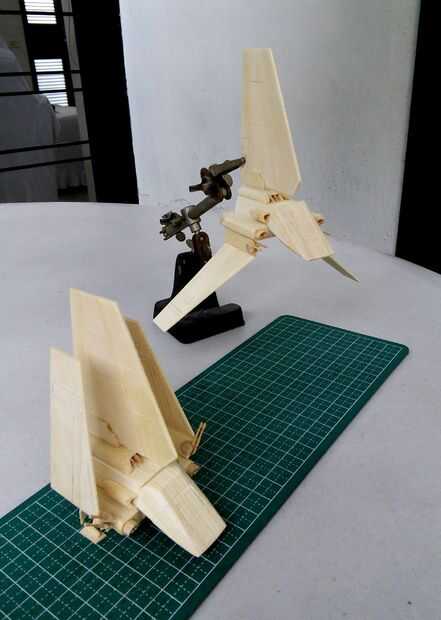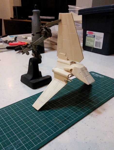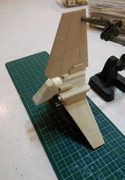 Finalmente, las alas completadas con el montaje terminado fuselage/pabellón - uno a la vez. Debo decir que la lanzadera en modo de vuelo era verdaderamente majestuoso y apto para un emperador malvado! Y bueno, no veo uno volando sobre el aeropuerto de Francfort un tiempo atrás ¡