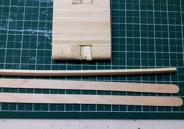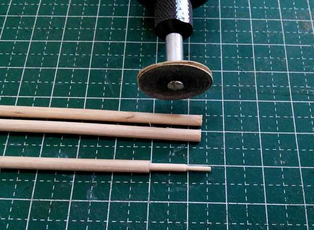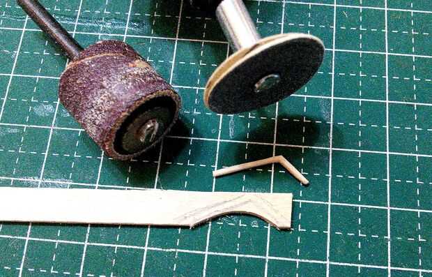 La suspensión 'guías' fueron un poco más complicado hacer. Se hicieron de 'sólido' palitos tallados en forma con un grano mediano 1/2 tambor lijadora y el disco fino accesorio de una herramienta de la moto.